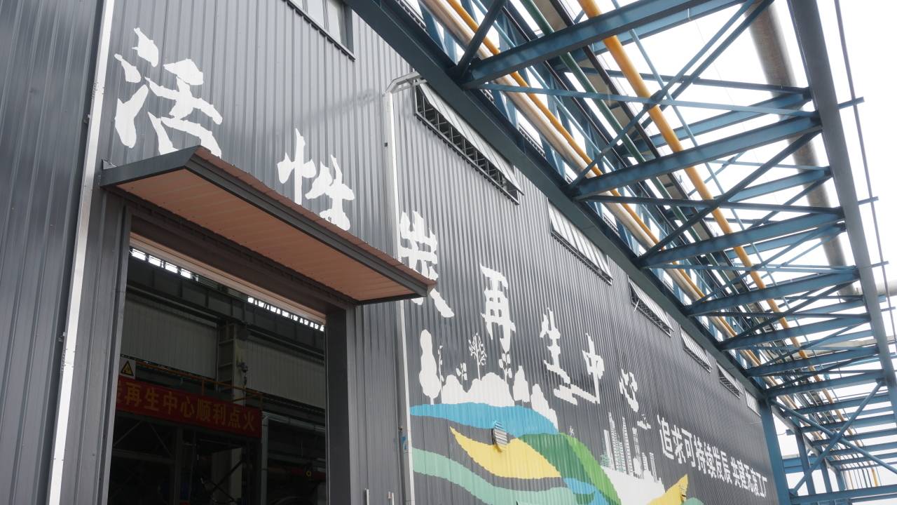 活動現場,隨著點火儀式的進行,首批廢活性炭通過回轉窯高溫熱處理技術,經過干燥、再生、活化、冷卻、篩分、包裝等一系列高溫熱再生流程,“變身”為再生活性炭產品,可用于循環使用。這條廢棄活性炭熱處理再生生產線可再生處理廢活性炭2萬噸/年。